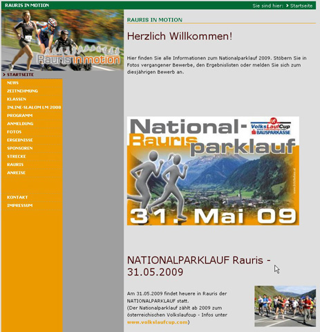 Web-Site für den Nationalparklauf Rauris (Rauris in Motion)