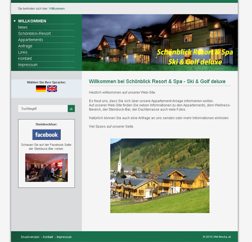 Web-Site inkl Buchungsformular für Schönblick Resort & Spa, Rauris